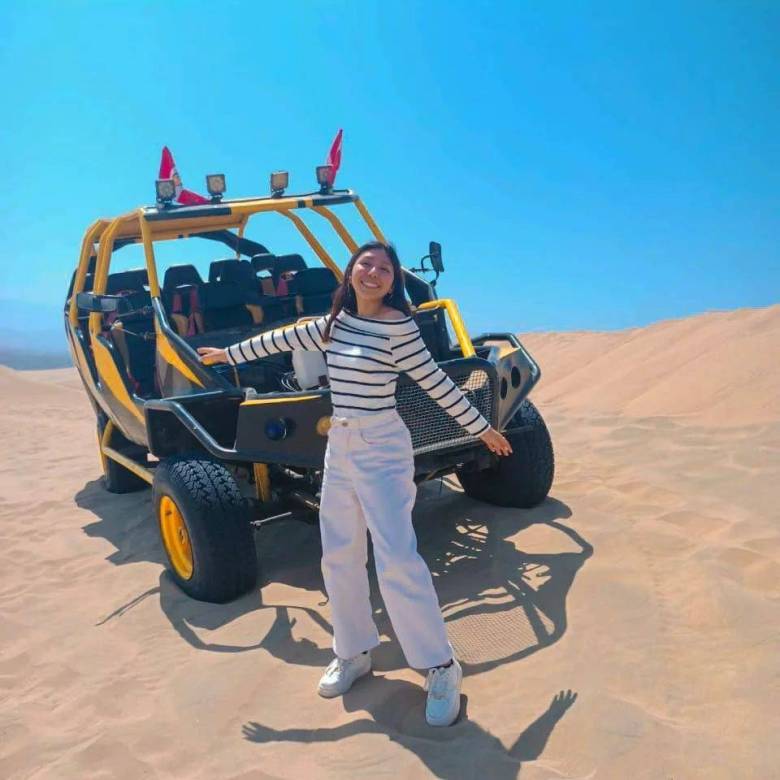 luego Subirás a unos Buggy que son carros areneros, con el cual iras entre las dunas, además practicarás el sandboarding, que es el descenso de las dunas con tablas una gran y divertida aventura que aumentará tu adrenalina, al conquistar las dunas de arena. Desde lo alto de las dunas verás el hermoso Oasis de Huacachina.